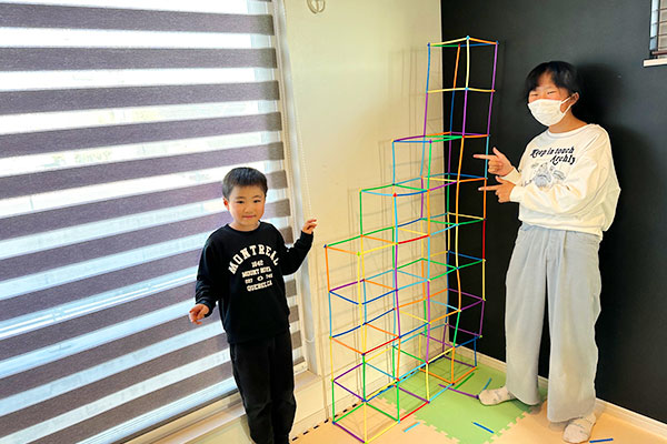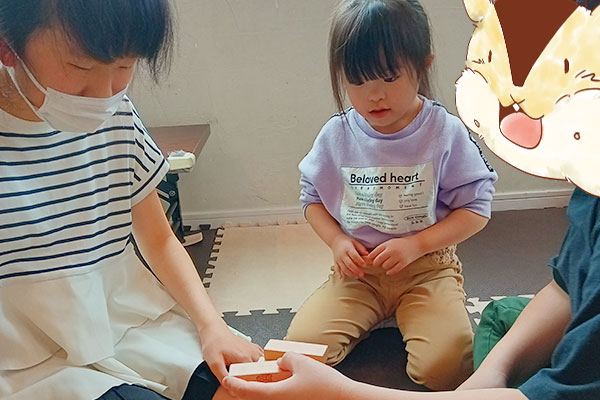 知育玩具等での遊びを通して樹のんのお兄さんやお姉さん達と少しずつコミュニケーションが取れ、自然な笑顔が見られるようになりましたヾ ^_^♪